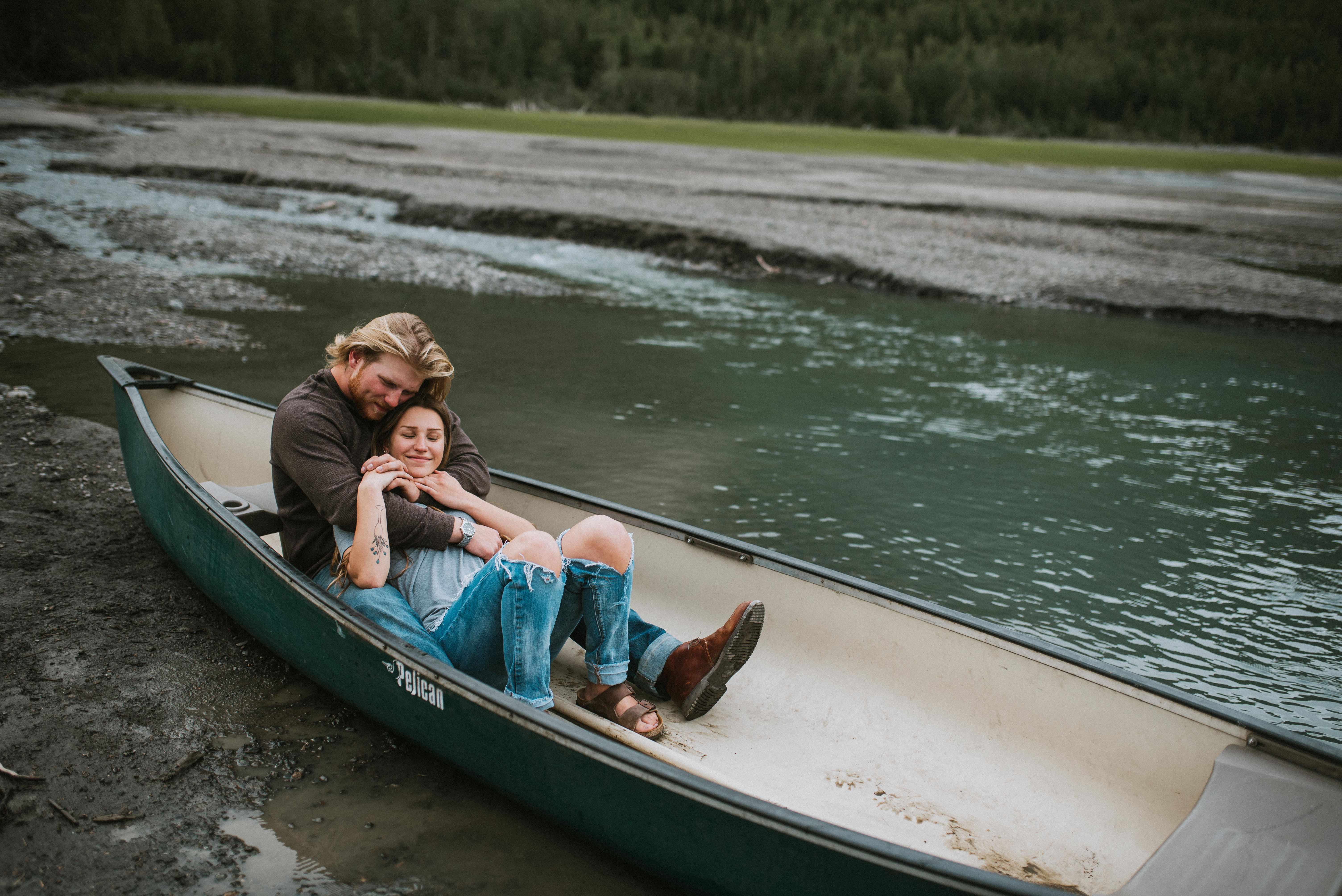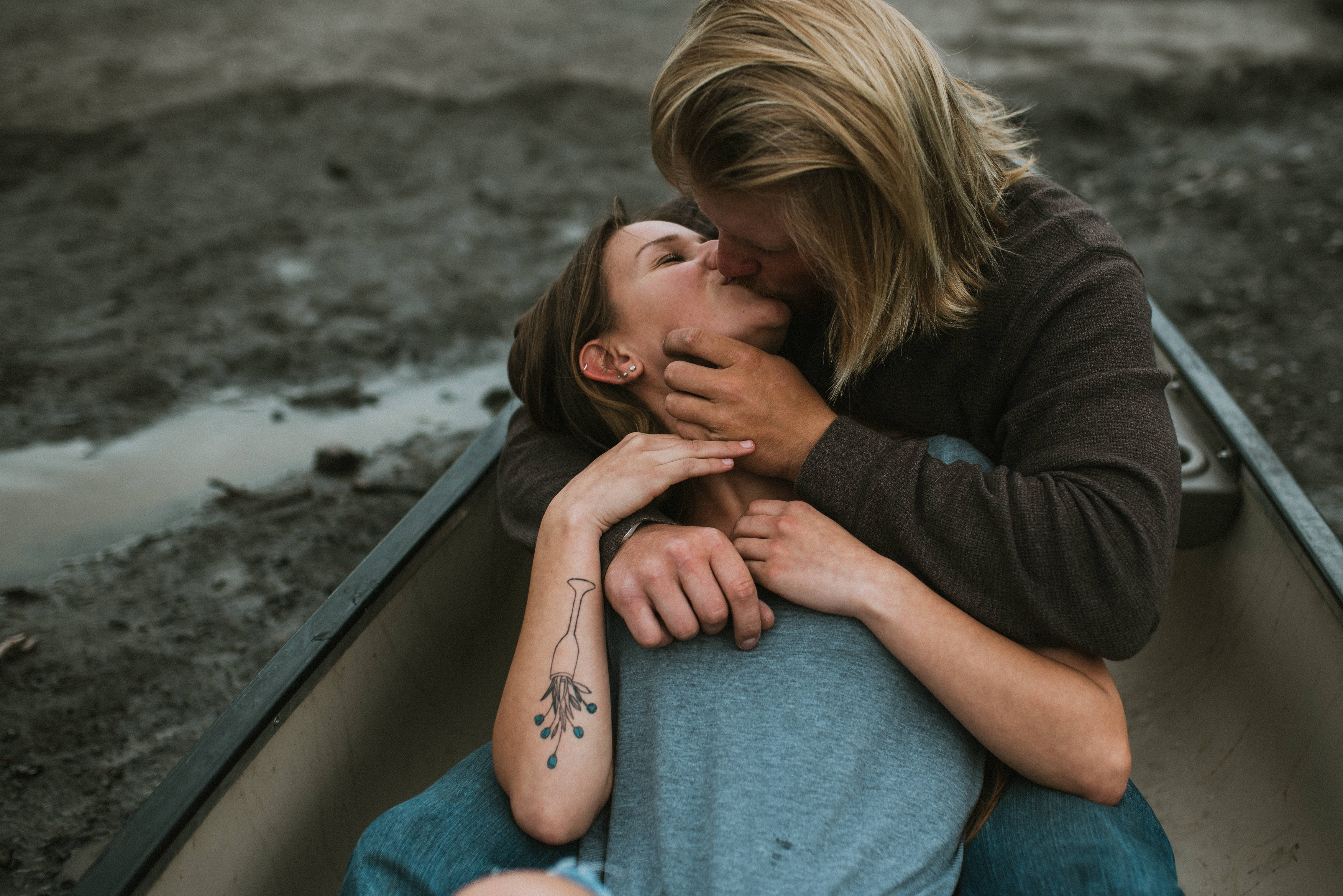 There is just something so nostalgic to me about canoes. I have always been a photographer with a love for adventure and of all things involving a little exploration and fun. As a result, canoes, boats and lakes, etc. always bring back memories of living out in Nancy Lake. My friends and I would embark on expeditions into the waters in whatever we had available. I just love the sound of water lapping against the sides of a boat, the gentle breeze pushing my hair back and the smell of fresh lake (ooooor sometimes dead fish if we’re being honest haha, gross). Because of this, I’ve always wanted to photograph a couple in a canoe, it had been something I’d been wanting to do for a while and when it finally happened, I was ecstatic!